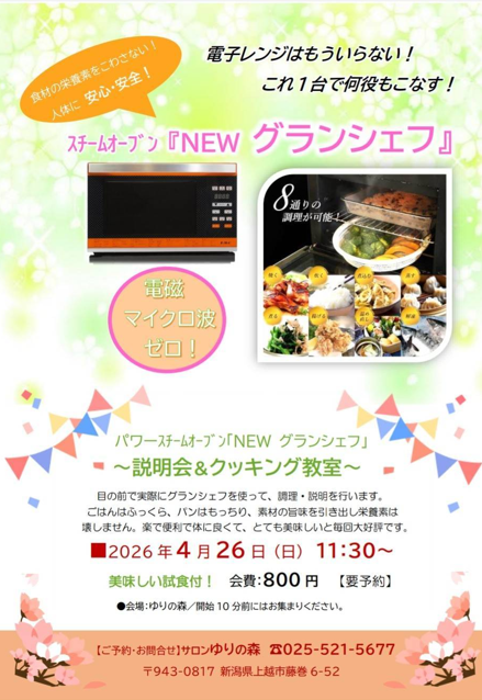 スチームオーブン『NEWグランシェフ』説明会&クッキング教室のご案内